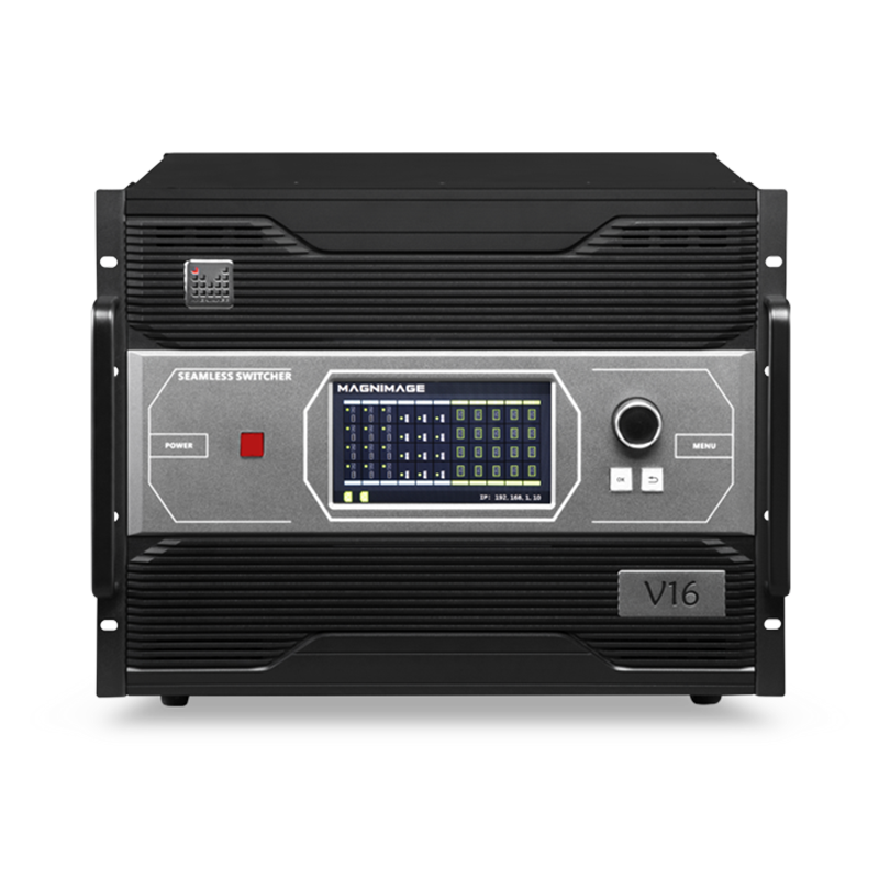 Một bộ chuyển mạch MIG-V16 hỗ trợ tối đa 16 máy chiếu 4K, chức năng ghép cạnh, chương trình và đầu ra phụ có thể điều chỉnh kích thước nhãn hiệu hợp nhất, vị trí, hướng hợp nhất, giá trị gamma và các chức năng khác của từng đầu ra một cách độc lập.